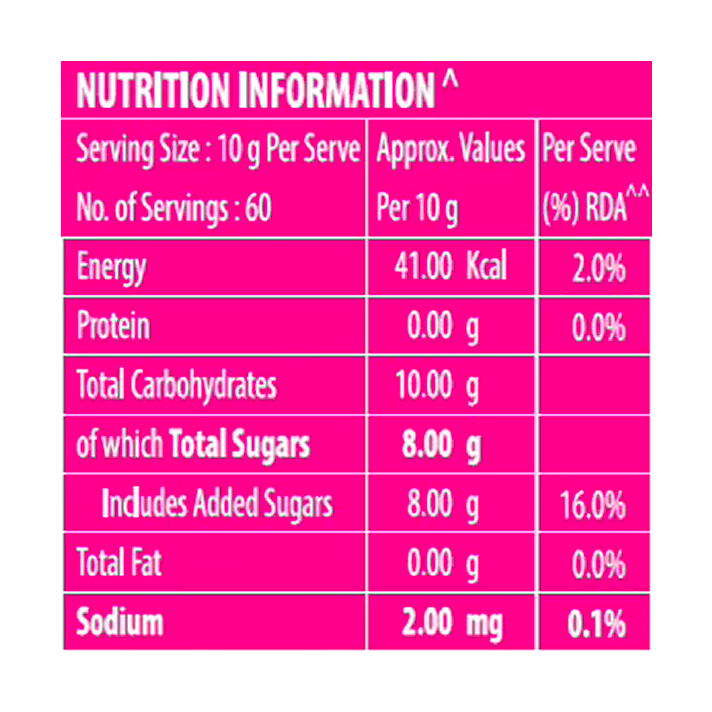| Serving Size: 10 g Per Serve No. of Servings : 60 |