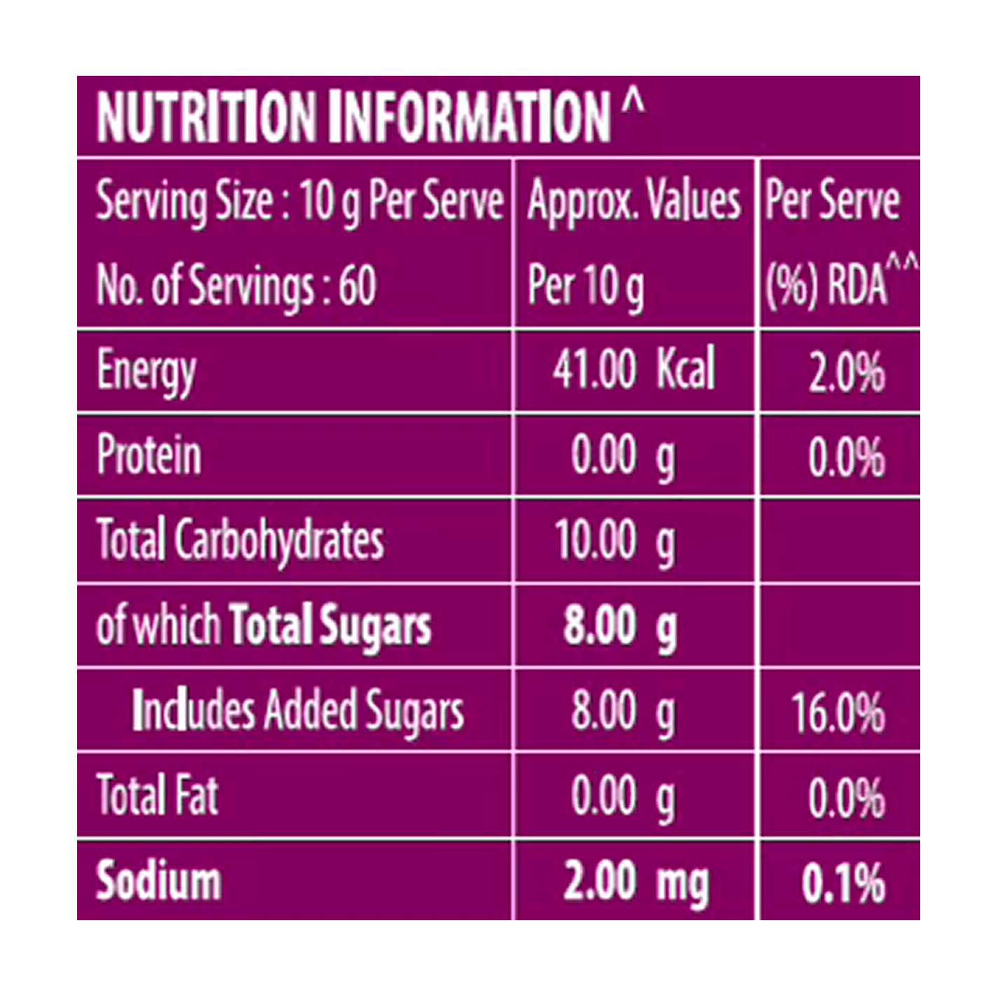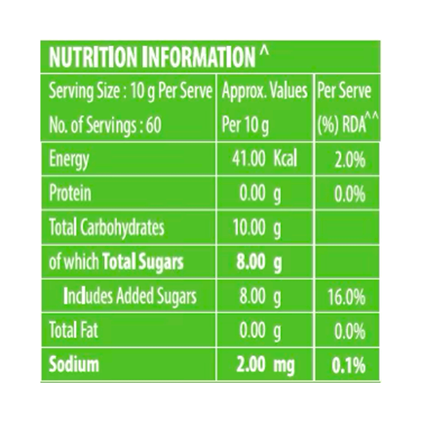 | Serving Size: 10 g Per Serve No. of Servings : 60 |